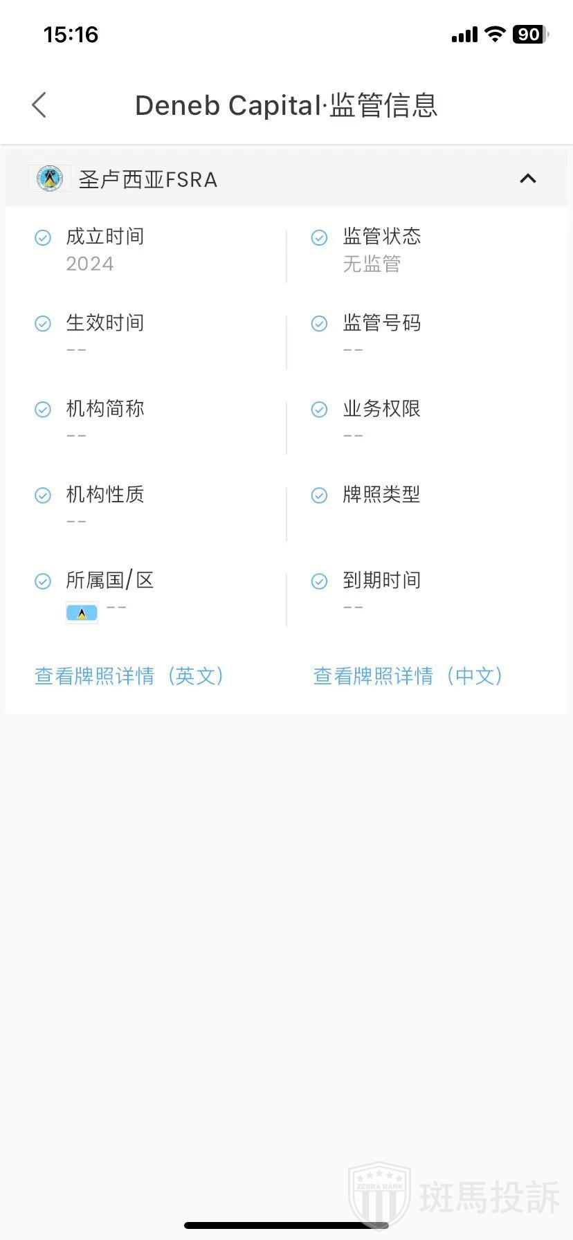 Deneb Capital,在FxGecko显示1家监管信息。持有的圣卢西亚FSRA监管状态为无监管。投资者资金安全无保障!
