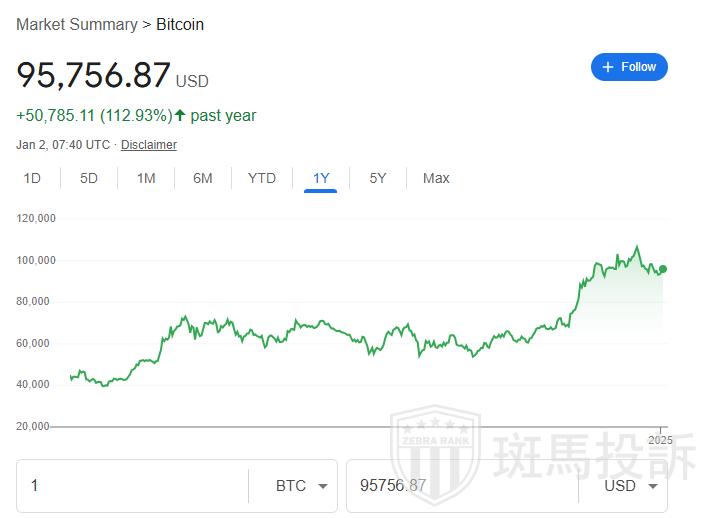 其中,比特币价格全年累涨112.93%,在特朗普胜选后一个月内先后突破8万、9万和10万美元大关,随后逐步回落,现徘徊在9.5万美元附近。以太坊全年累涨45.6%。