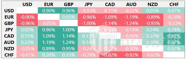 热图显示了主要货币相对于其他货币的百分比变化。基础货币从左列中选取,而报价货币从顶部行中选取。例如,如果您从左列选择欧元并沿着水平线移动到美元,则框中显示的百分比变化将表示EUR(基数)/USD(报价)。