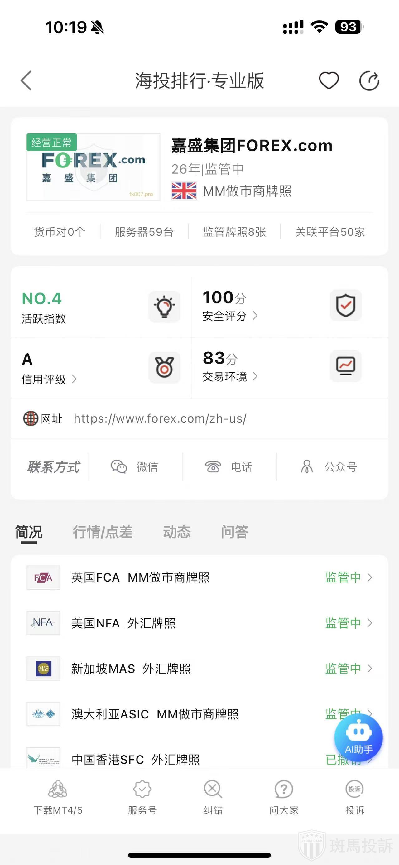 根据海投排行查询显示,这家平台叫嘉盛集团FOREX.com,成立于1999年,全球排名4名,安全评分100分,平台宣传称拥有8个国家的监管牌照,风险扫描预警有326条..
