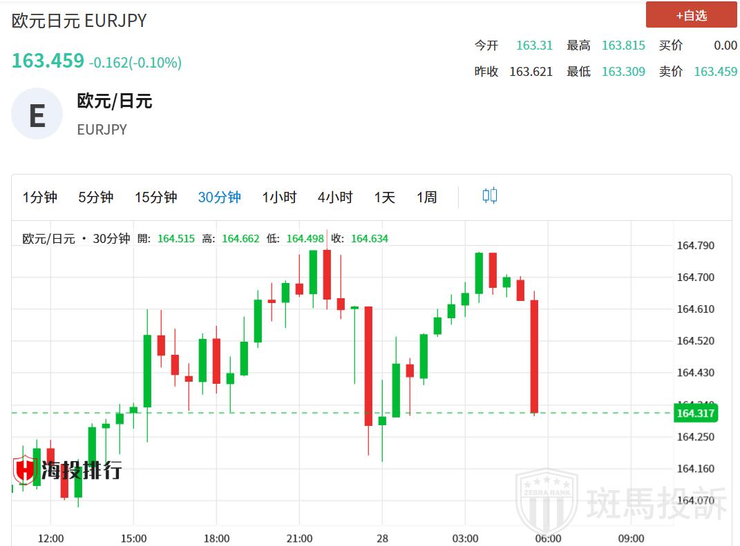 欧元/日元在周三欧洲早盘时段下跌至163.35。