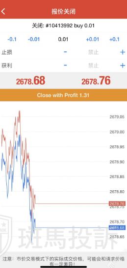 刚刚开仓0.01手黄金buy后不能平仓,已过去十分钟还是不能平仓。眼看着盈利的单子亏损。一直显示报价错误。