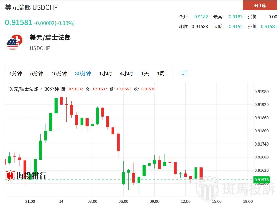 美元/瑞郎在周二欧洲早盘时段走低至0.9160附近。
