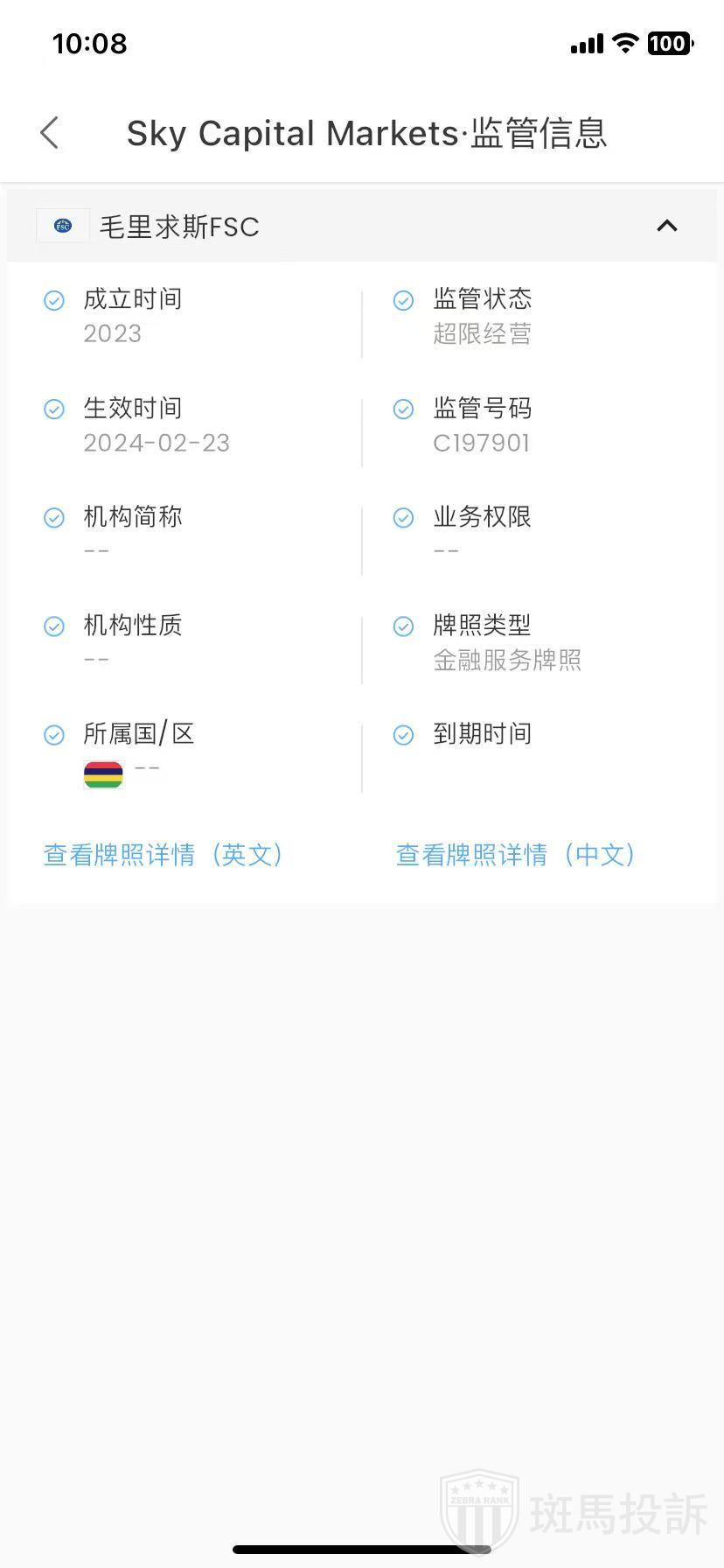 Sky Capital Markets,在FxGecko显示1家监管信息。持有的毛里求斯FSC监管状态为超限经营。投资者资金安全无保障!