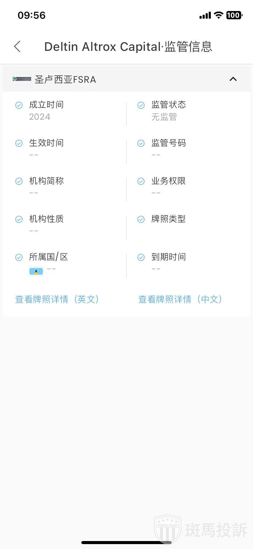 Deltin Altrox Capital,在FxGecko显示1家监管信息。持有的圣卢西亚FSRA监管状态为无监管。投资者资金安全无保障!