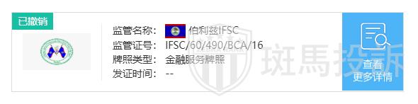 赢磐国际声称受伯利兹国际金融服务委员会(IFSC)监管,注册号为IFSC/60/490/BCA/17。然而,目前该监管牌照已经被撤销,还未有新的金融机构对该平台进行监管。