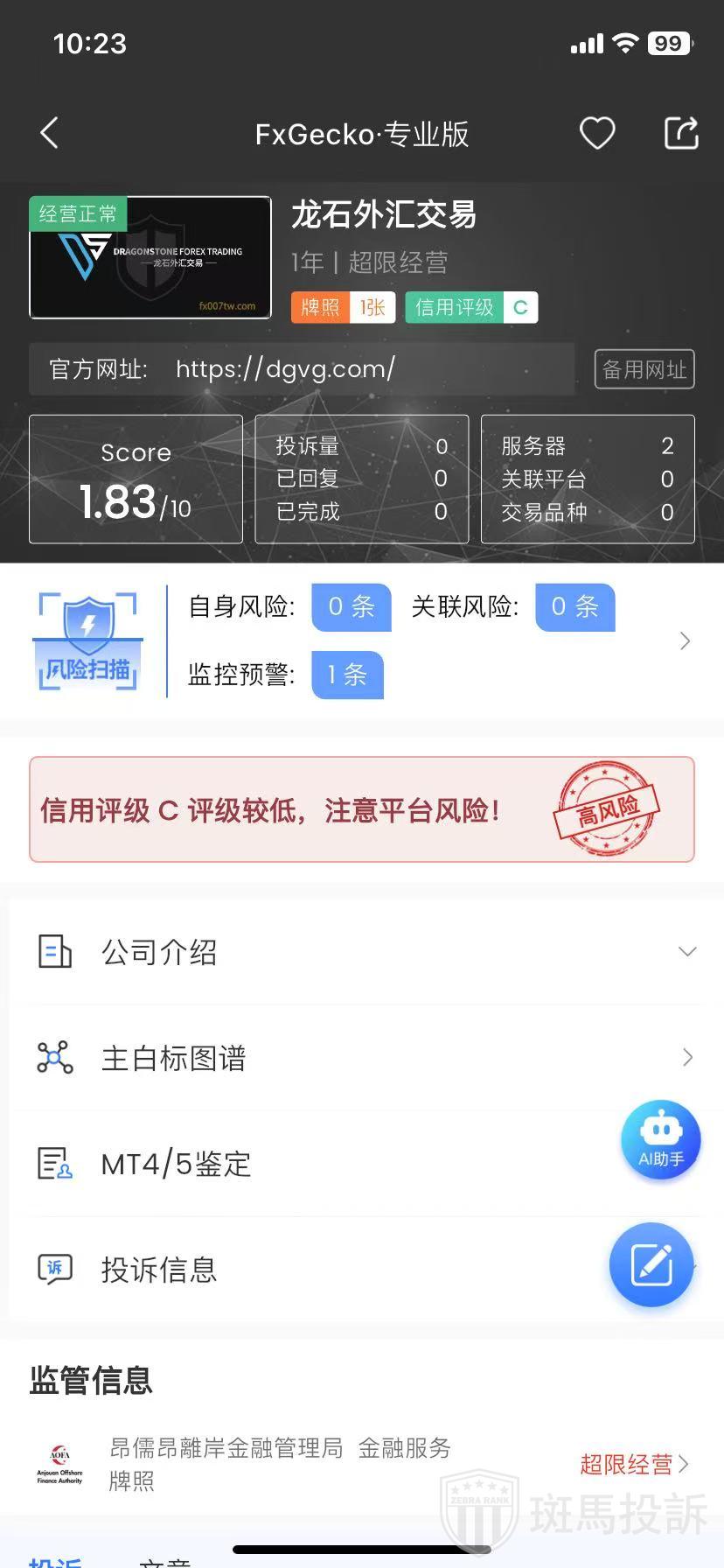 龙石外汇交易,FxGecko评分1.41分,信用评级较低,建议投资者远离!