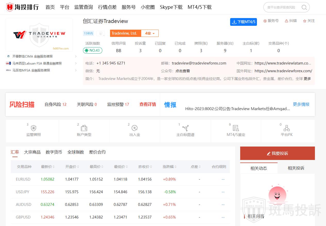 创汇证券(Tradeview)是一家成立于2004年的在线交易平台,主要提供外汇、股票、期权、期货等多种电子交易产品的直接市场准入(DMA)交易执行和清算服务。它注册在开曼群岛,并受到包括马耳他MFSA、马来西亚Labuan FSA、开曼群岛CIMA在内的多家金融监管机构的监管。