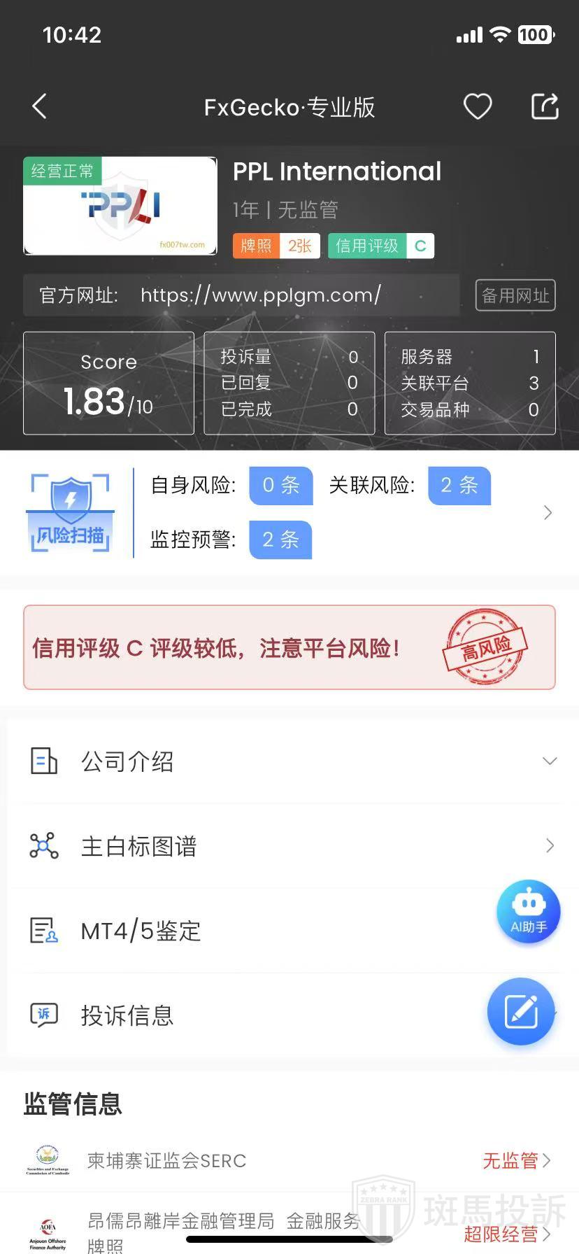 FxGecko风险提示:PPL International外汇平台监控预警2条。注意提前预警!