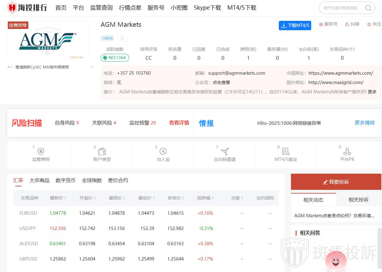 据报道,AGM Markets的官方网站目前无法访问,这可能表明其运营存在问题或缺乏透明度。