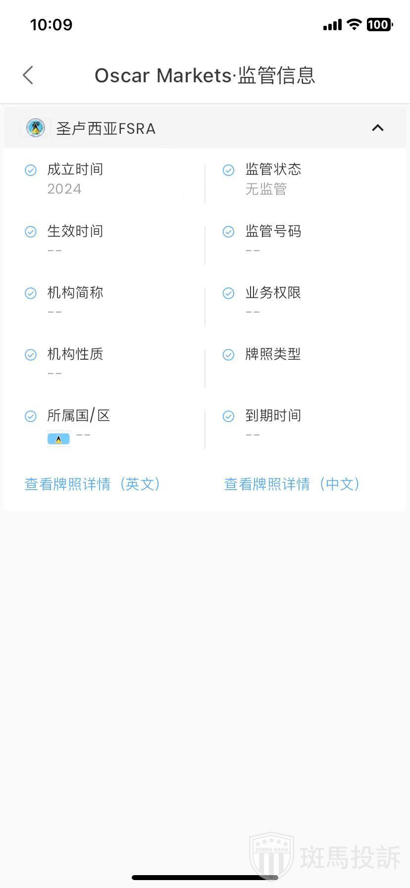 Oscar Markets ,在FxGecko显示1家监管信息。持有的圣卢西亚FSRA监管状态为无监管。投资者资金安全无保障!