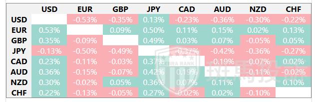 热图显示了主要货币相对于其他货币的百分比变化。基础货币从左列中选取,而报价货币从顶部行中选取。例如,如果您从左列选择瑞郎并沿着水平线移动到美元,则框中显示的百分比变化将表示CHF(基数)/USD(报价)。