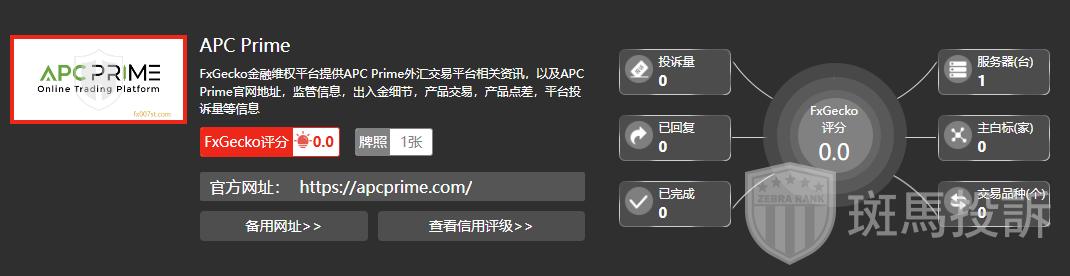 APC Prime,FxGecko评分0分,信用评级较低,建议投资者远离!