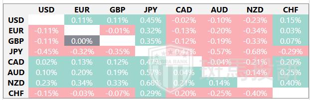 热图显示了主要货币相对于其他货币的百分比变化。基础货币从左列中选取,而报价货币从顶部行中选取。例如,如果您从左列选择美元并沿着水平线移动到日元,则框中显示的百分比变化将表示USD(基数)/JPY(报价)。