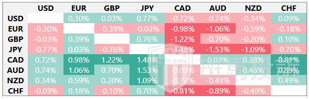 下表显示了美元(USD)对所列主要货币本周的变动百分比。[货币名称]对[货币名称]最强。
