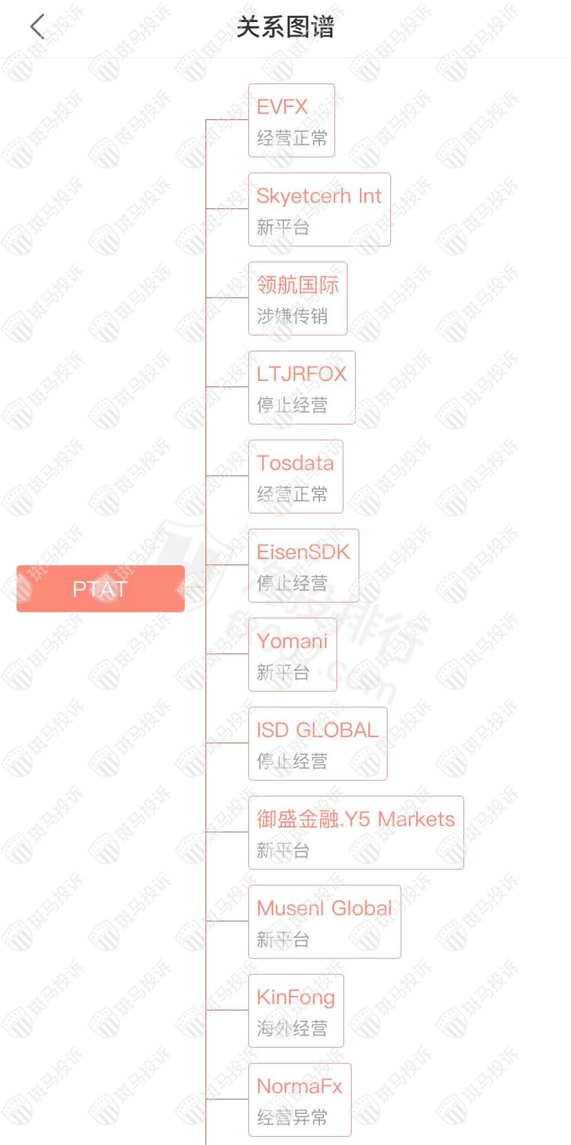 主白标关系显示,PTAT平台和24家平台是一家公司,从他们的服务器地址,网站的模板来看,都可以看出来相似的地方。其中LTJRFOX、EisenSDK、ISD GLOBAL、Enge停止经营; 领航国际涉嫌传销;NormaFx经营异常。