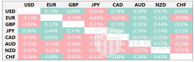 下表显示了纽元(NZD)对所列主要货币今日的变动百分比。纽元对日元最弱。
