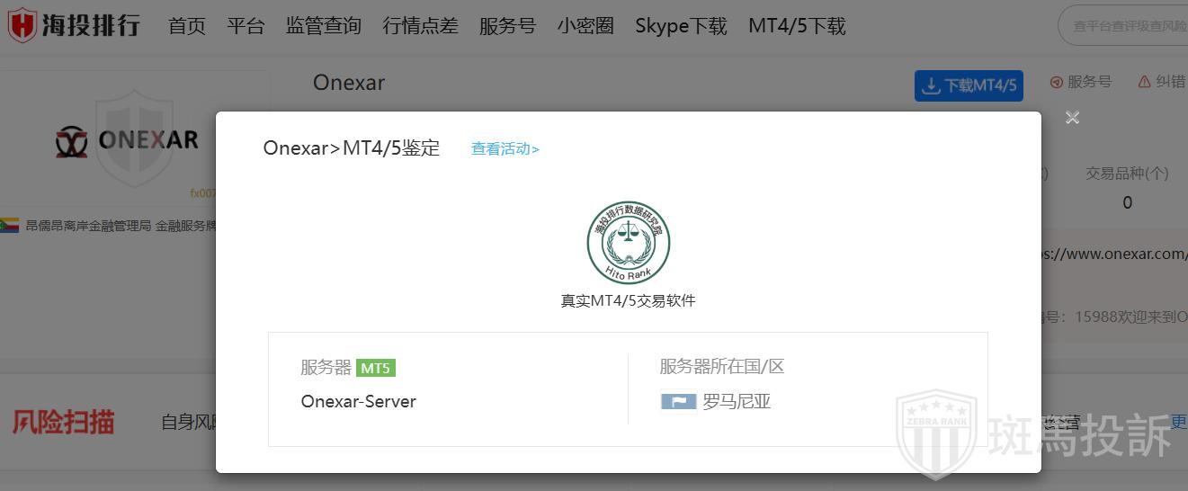 这家平台叫Onexar,成立于2025年,全球活跃指数3397名,目前宣传有1个监管,没有外汇牌照,不能做外汇保证金交易,风险扫描显示1条风险,投资者资金安全无保障。