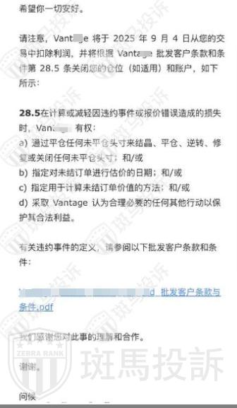 •然而,平台不仅迟迟未放款,反而突然来信称要“扣除盈利并关闭账户”,并引用其客户协议中的第28.5条款,声称我触发了“报价错误(Quoting Error)”或“默认事件(Default Event)”。