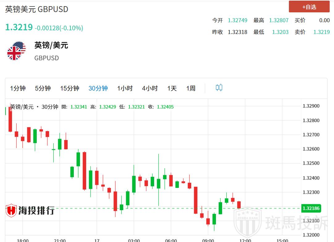 英镑/美元从周三达到的六个月高点1.3292回落。