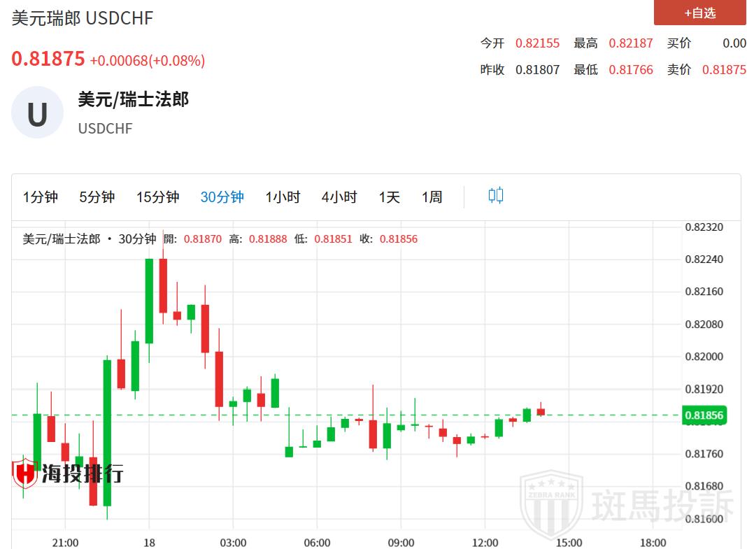 瑞士法郎在瑞士公布好于预期的贸易平衡数据后获得强劲。
