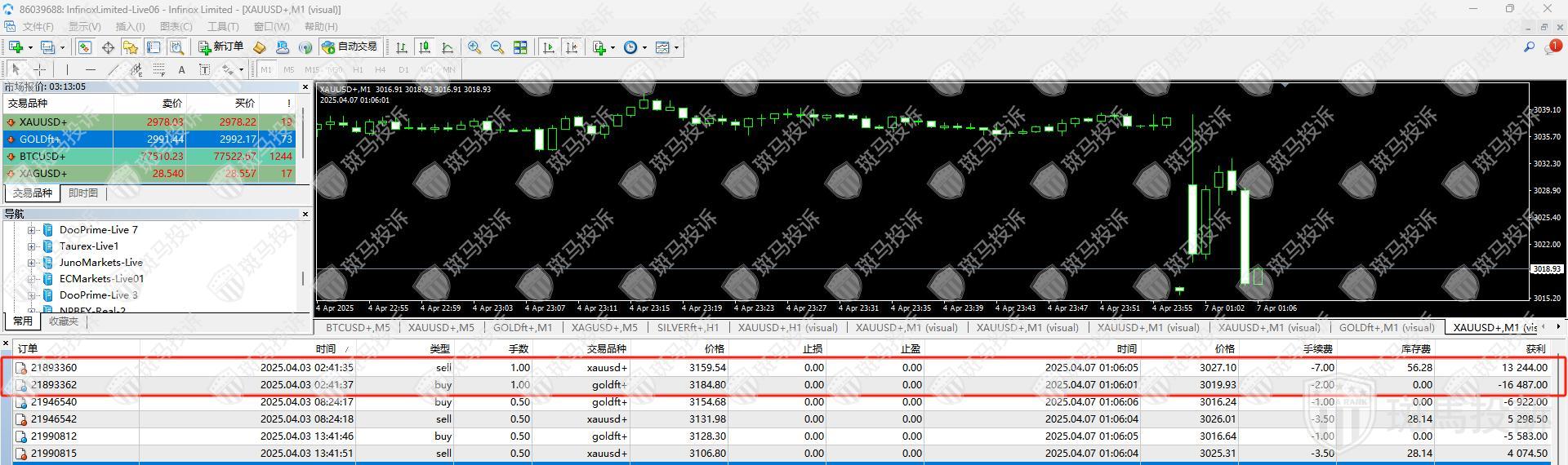 我的账号在4月3日持仓两手黄金现货空单和两手黄金期货多单,账户处于对锁状态,在4月7日平台时间01:06:01秒的时候,通过指标回测看到当时的现货与期货的价差为-6,且期货的价格是3025.21,按照当时的价格,我的账户本来并不会触发强平的。