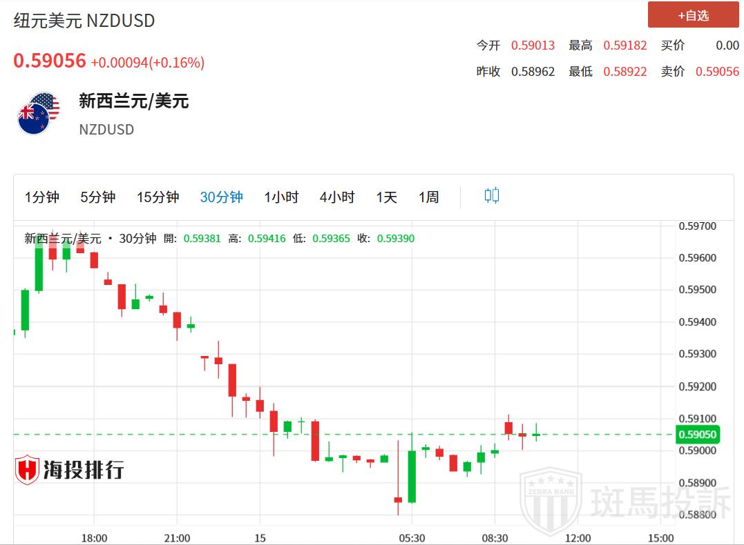 纽元/美元在周四亚洲时段走强至约0.5900,日内上涨0.10%。