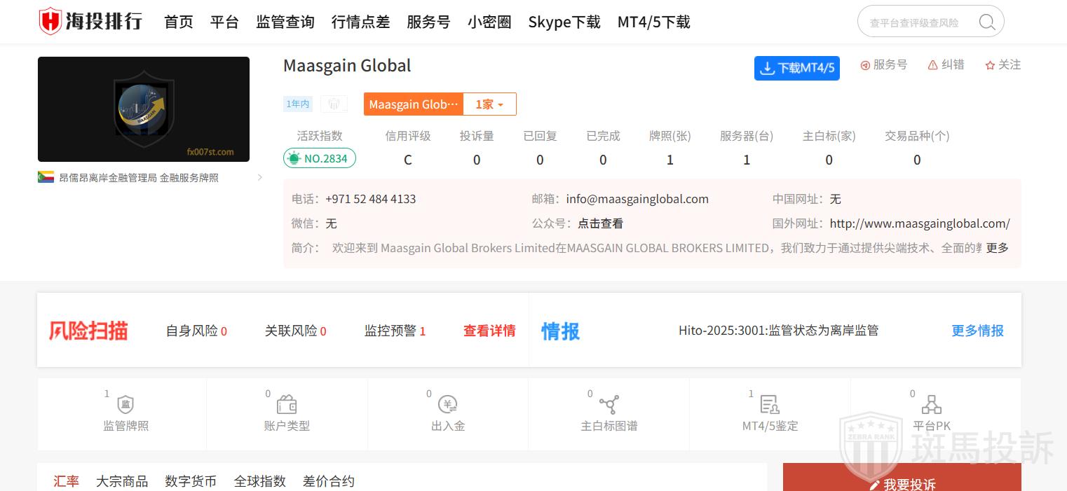 Maasgain Global平台目前在斑马投诉未收到相关投诉。