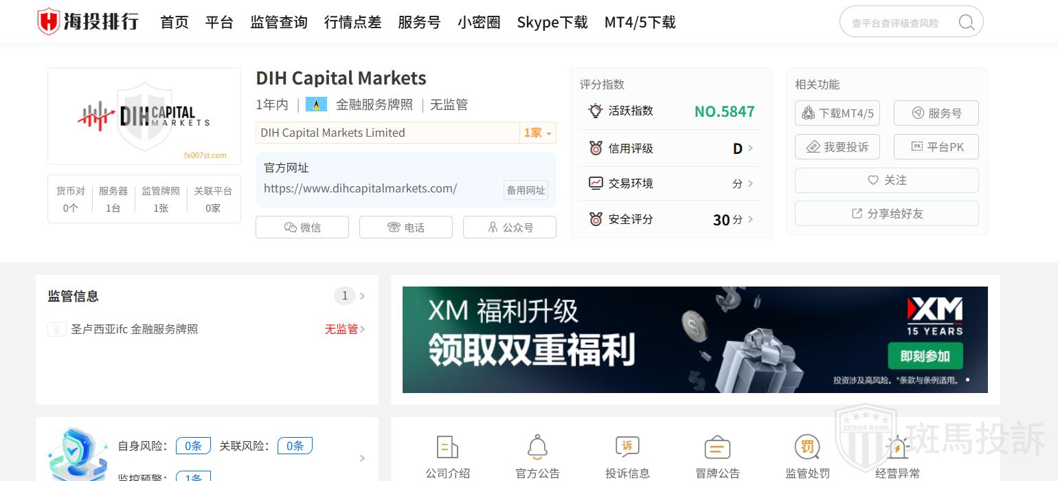 DIH Capital Markets平台目前在斑马投诉未收到相关投诉。