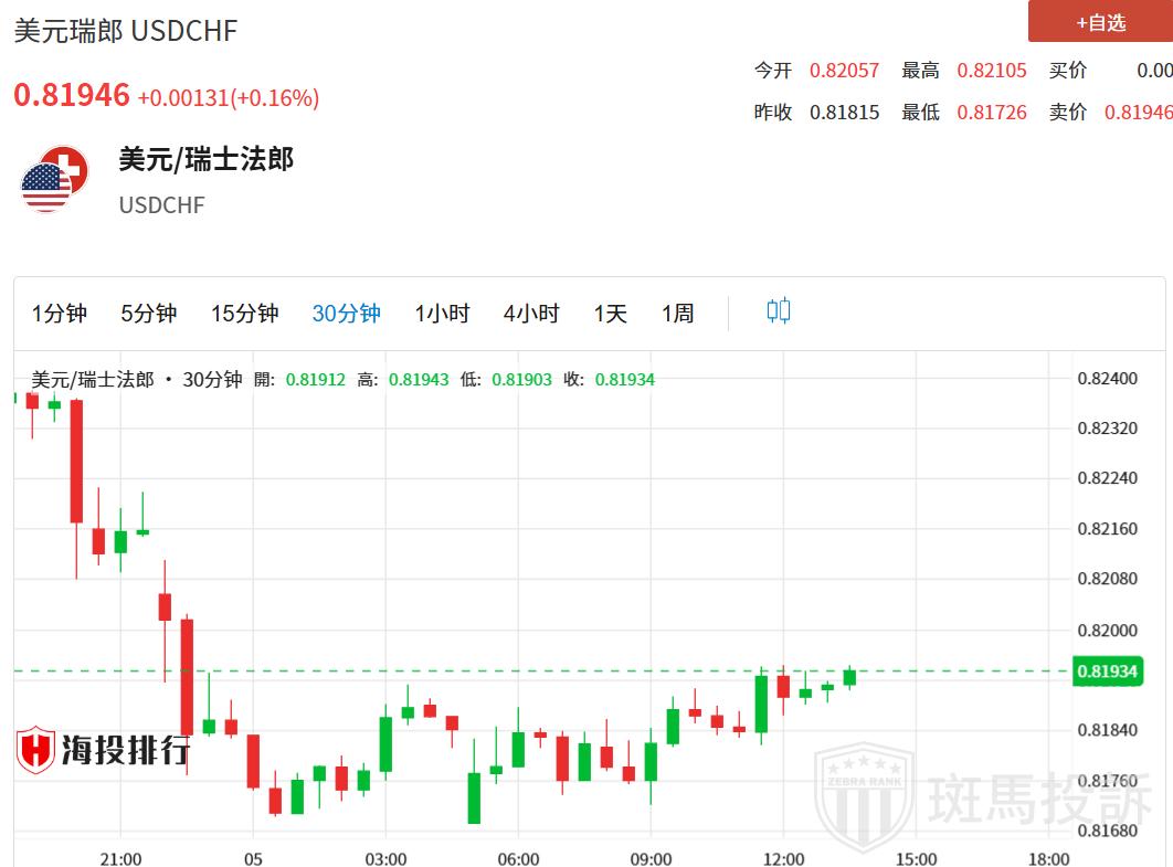 美元/瑞郎在0.8200附近谨慎交易,投资者静候5月份美国非农就业数据。