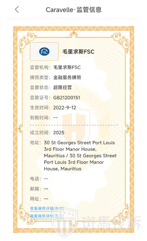 Caravelle平台监管合规吗?