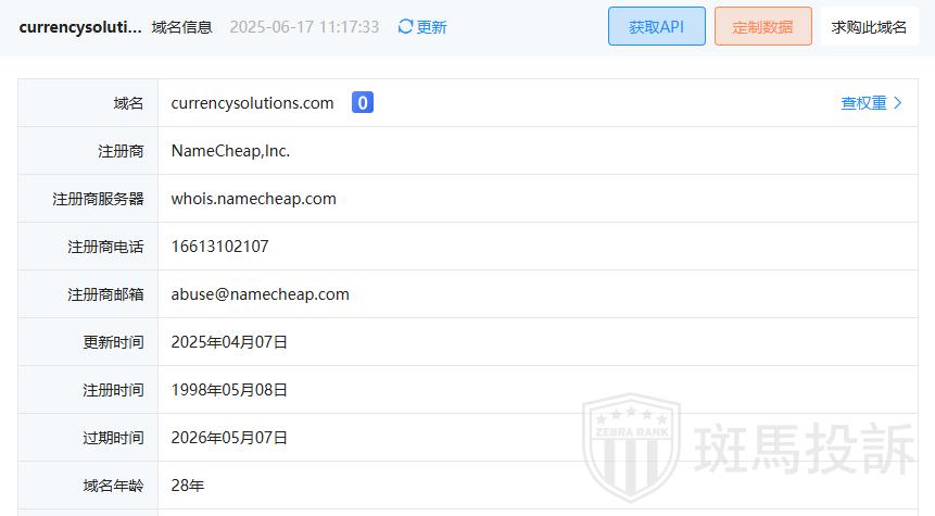 Currency Solutions平台目前在斑马投诉未收到相关投诉。