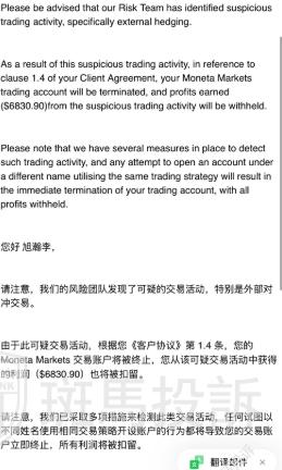 A某表示,联系平台,平台方说是违规交易,但没有给出具体违规事项,多次沟通下,平台再次表示是因为外部对冲交易,而我对此不理解,表示也没有这种操作,而后平台也未给出具体解释和证据。