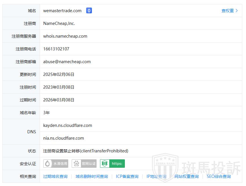 这家平台叫WeMasterTrade,成立于2025年,全球活跃指数2632名,目前有1个监管,但是没有外汇牌照,不能做外汇保证金交易,风险扫描显示1条风险,投资者资金安全无保障。