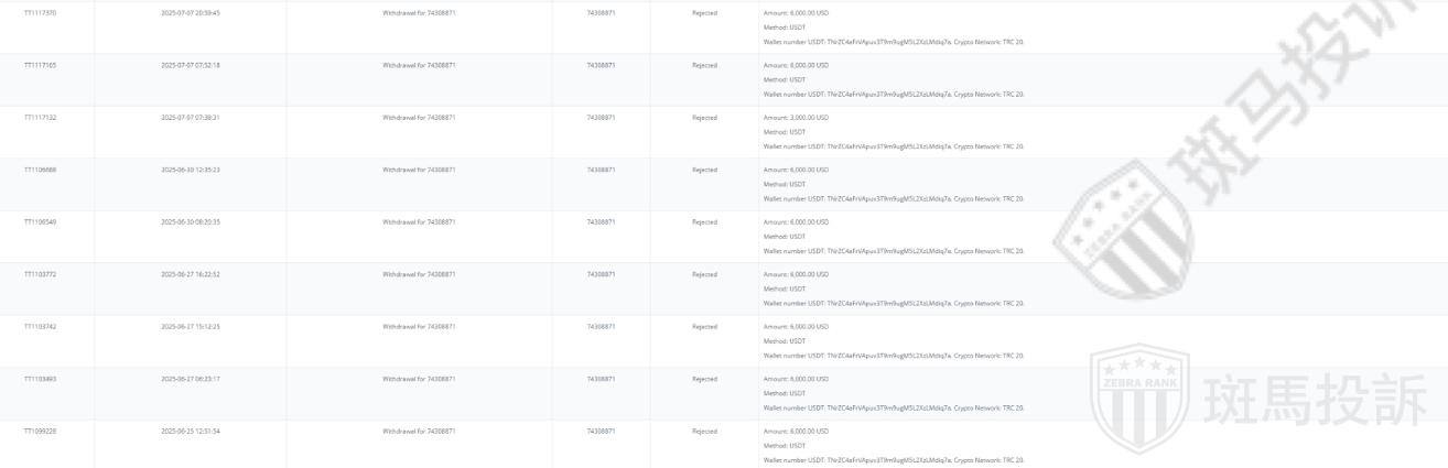 A某表示,平台再次拒绝出金申请,而A某称这6000美金本身就是他在五月份入金的所有本金,目前的情况是出金额度只有900美金,我多次与平台进行沟通都无果,并且后台已被封无法登录,所有本金都无法取出。无奈只能让斑马协助帮忙要回属于我自己的本金。