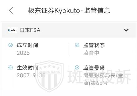 极东证券受日本FSA授权并监管,许可证号为関束财務局長(金商)第65号,FSA属于正规的外汇牌照,但市场有风险,投资者仍需谨慎选择。