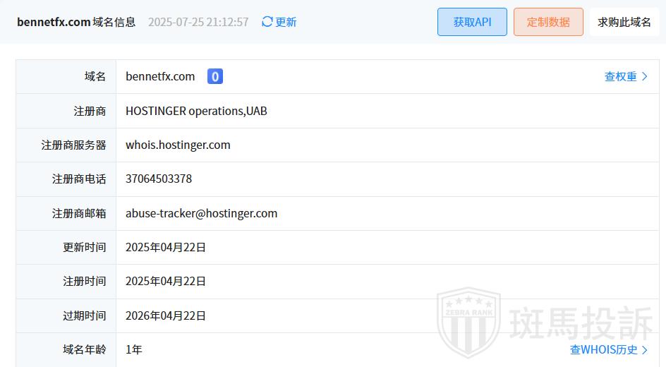 这家平台叫Bennet Fx,成立于2025年,全球活跃指数排名2266名,目前有1家监管,1张外汇牌照,不能做外汇保证金交易,风险扫描显示1条风险,投资者资金安全有保障。