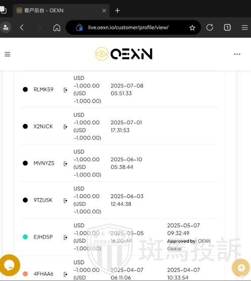 近期,来自于斑马投诉的用户反馈:OEXN存在出金及信任问题。