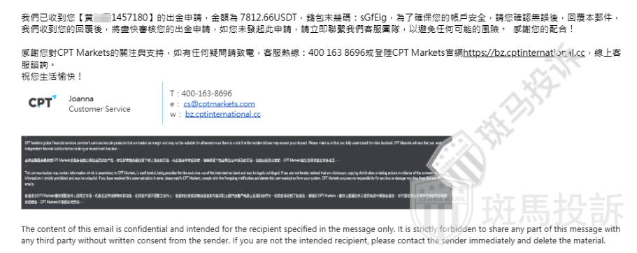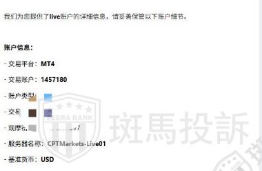近期,来自于斑马投诉的用户反馈:CPT平台出金延迟问题
