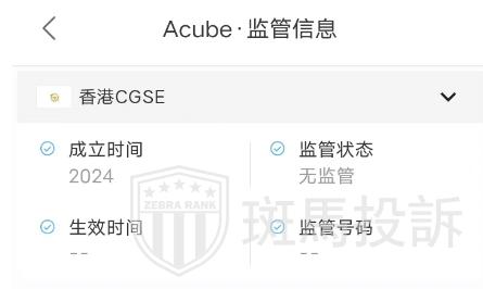 Acube宣称受香港CGSE监管,但是经我们查询并未发现相关监管信息,投资者需谨慎选择。