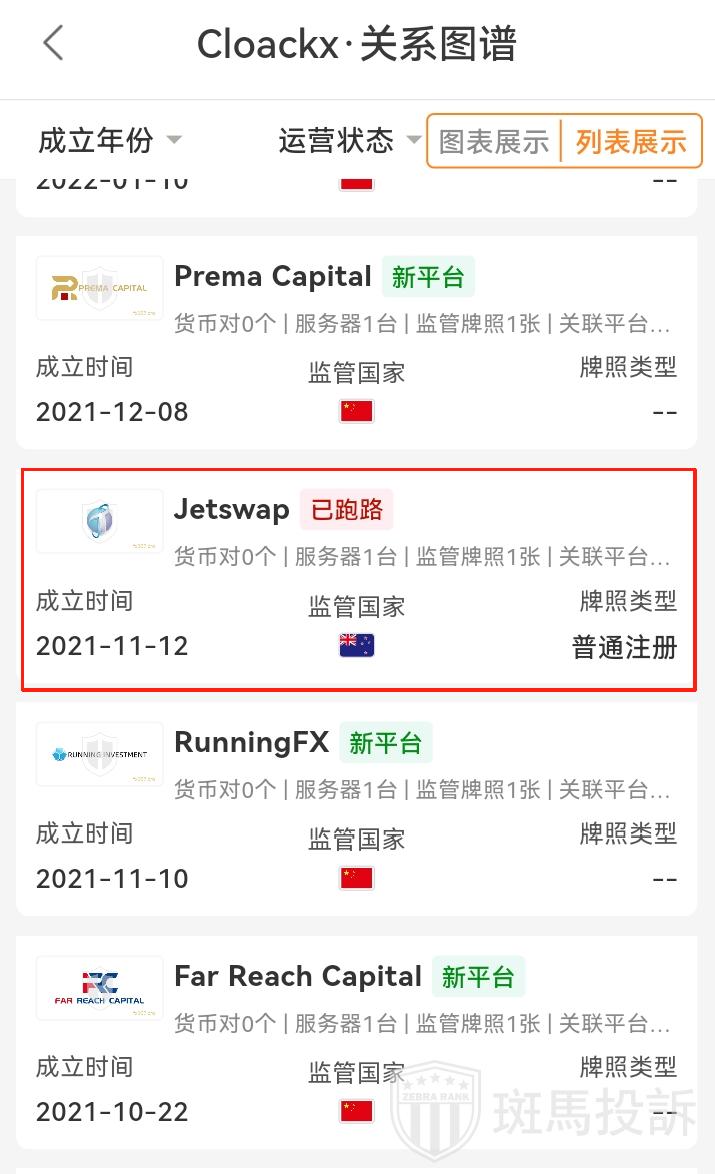 很明显,Cloackx的最终结果和Jetswap是一样的。Jetswap平台在2021年成立,暴雷后在2025年成立了Cloackx平台,并且还是使用没有外汇资质的金融牌照,用一样的没有备案的域名和一样的网站模板继续在国内收割韭菜。