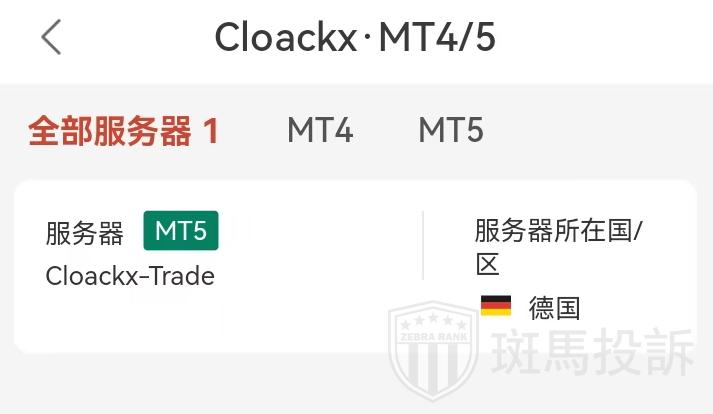 Cloackx有一台MT5服务器,在德国。