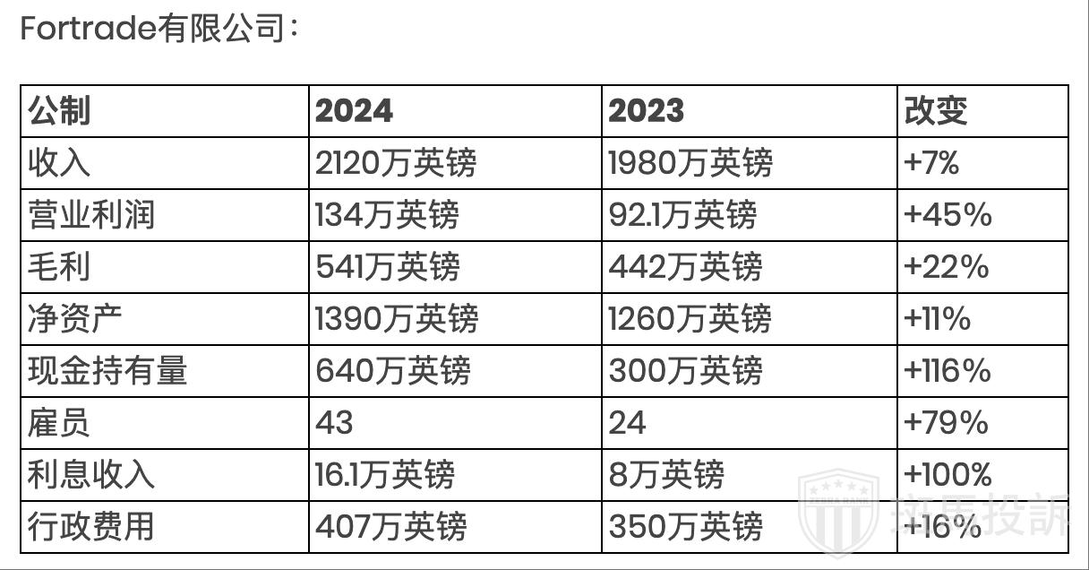 专注于CFD交易的英国金融服务公司Fortrade Limited公布其2024年业绩强劲,得益于客户活动增加,盈利能力提升。这家总部位于伦敦的经纪商公布的2024年营业利润为134万英镑,较2023年的92.1万英镑增长37%。然而,Fortrade尚未披露其2025年上半年的具体业绩数据。