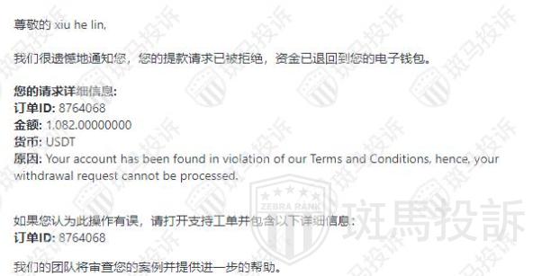 近期,来自于斑马投诉的用户反馈:FXGT平台出金问题。