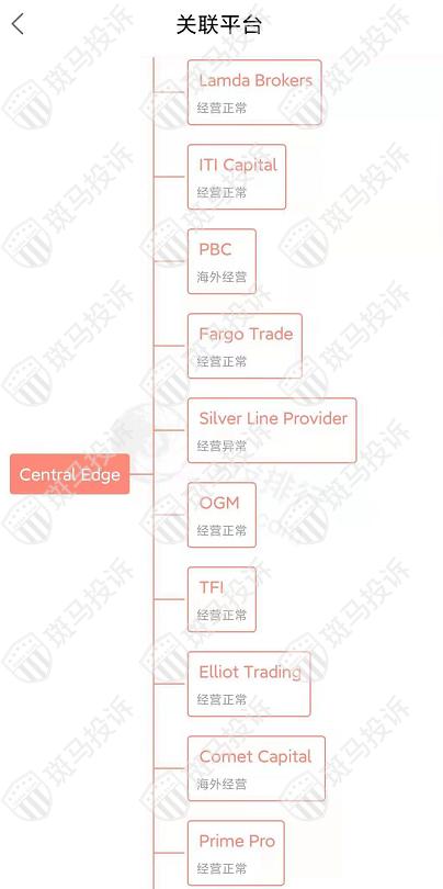 主白标关系显示,Central Edge平台目前和18家平台存在关联,其中2家海外经营,1家经营异常。
