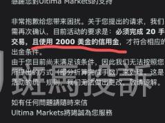 近期,来自于斑马投诉的用户反馈:Ultima Markets交易大赛奖金问题。