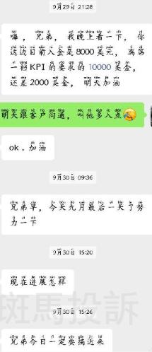 A某表示,自己是安汇平台的上海分部的员工,自己之前面试入职的时候,已经有和公司负责人谈好的业绩要求是完成一万净入金每个月就有相对应的底薪,并且在九月期间还一直在催业绩说达到一万就有。