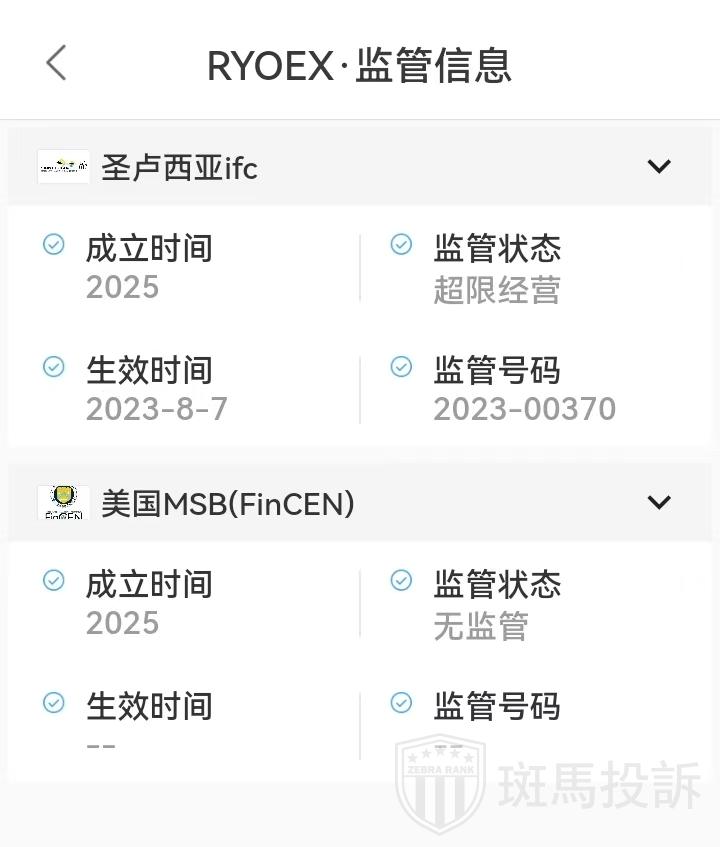 RYOEX平台目前在斑马投诉未收到相关投诉。