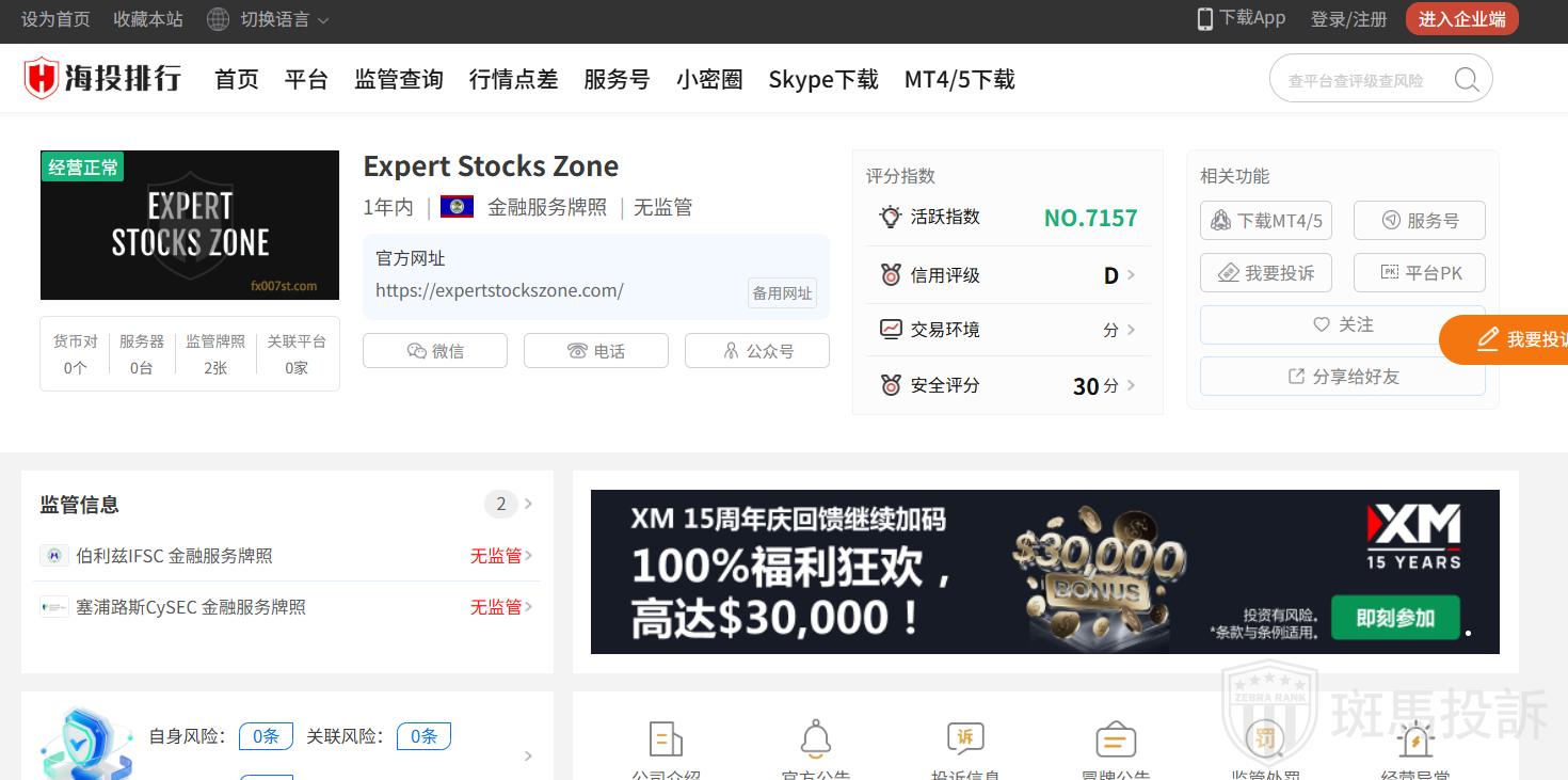 Expert Stocks Zone平台目前在斑马投诉未收到相关投诉。