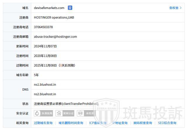 Devise FX Market 平台目前在斑马投诉未收到相关投诉。